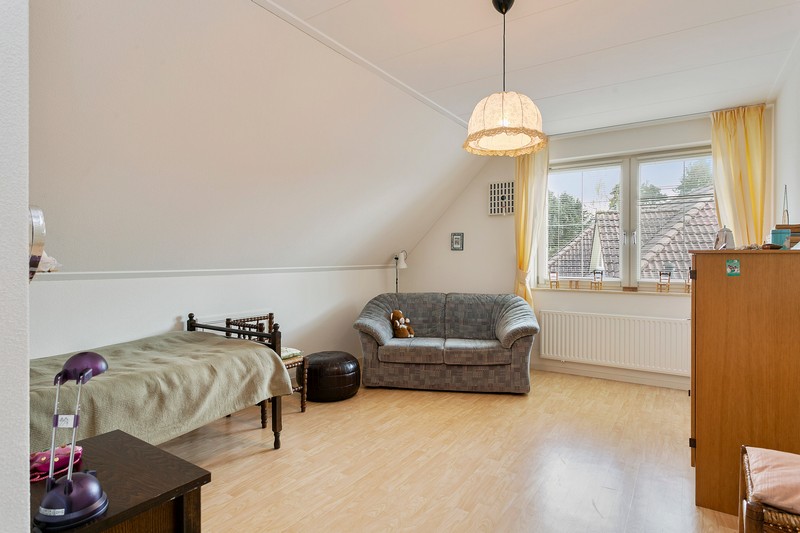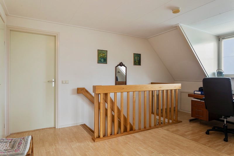 Vanuit de hal kunt u via de statige robuuste trap de verdieping bereiken en komt u op de lichte overloop welke tevens dienst kan doen als studie-/werkruimte. De overloop biedt toegang tot drie ruime slaapkamers en een nette tweede badkamer met wastafel, douche en toilet. De 4e (slaap-)kamer biedt toegang tot de enorme ruimte boven de tussenbouw en garage. Mocht u nog 1 of 2 kamer extra nodig hebben, dan kan dat.
