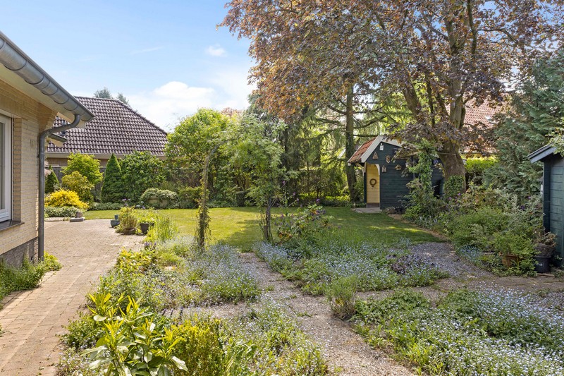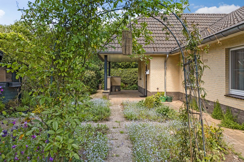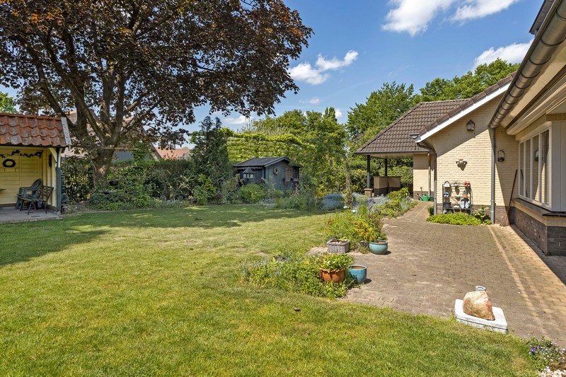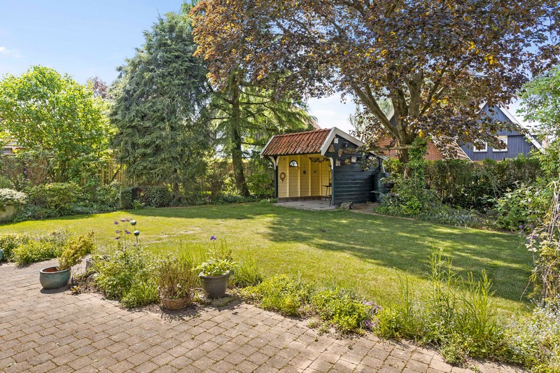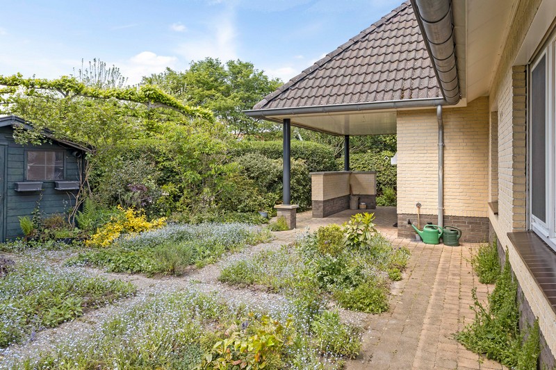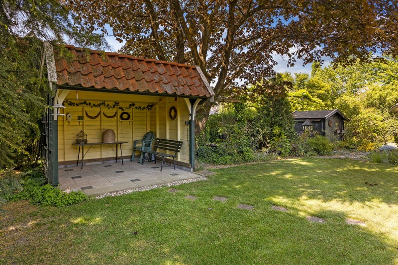 De zonovergoten achtertuin is gelegen op het zuidwesten. Een prachtige esdoorn zorgt voor de nodige schaduw evenals de overdekte zitjes in de tuin en direct achter de woning grenzend aan de woonkamer. De achtertuin is een heerlijke plek om te genieten van het zonnetje en biedt alle rust en privacy.