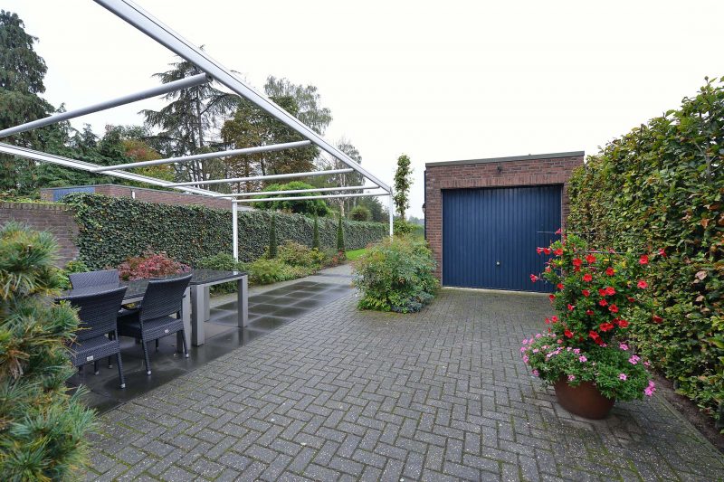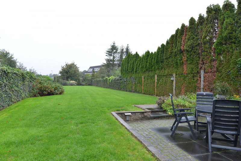 Laten we ook de tuin voor en achter het huis niet vergeten. De voortuin is onder architectuur en bovenal onderhoudsarm aangelegd en vormt één geheel met de voortuin van de buren. De achtertuin is uiteraard wel privé. De oprit is af te sluiten met een dubbele poort waardoor uw privacy is gewaarborgd! Direct achter de woning vinden we een groot terrasscherm zodat u bij overvloedige zon toch in de schaduw kunt zitten. Ook de achtertuin is tot in de puntjes verzorgd. En mocht u zich zorgen maken of er wel voldoende plek is voor de trampoline of zwembad. De tuin heeft een oppervlakte van circa 600 m² dus welke wensen u ook heeft, grote kans dat deze vervuld kunnen worden aan de Scholtenhagenweg.