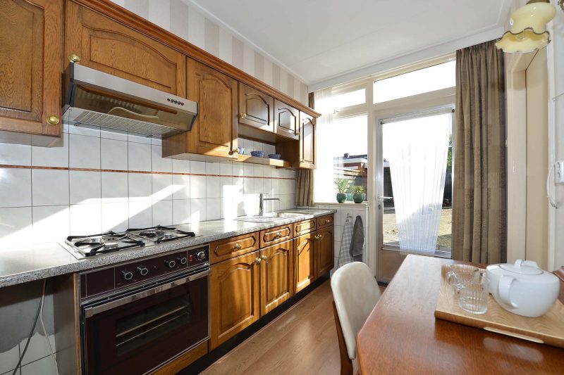 Opvallend veel licht valt de woonkamer aan zowel de voor- als de achterzijde binnen. Met de achterzijde op de oostkant en de voorzijde op de westkant kunt u de hele dag genieten van de zon. De vooralsnog dichte keuken is voorzien van een inbouwkeuken. Keuken en woonkamer geven beide toegang tot de tuin via loopdeur of tuindeuren.