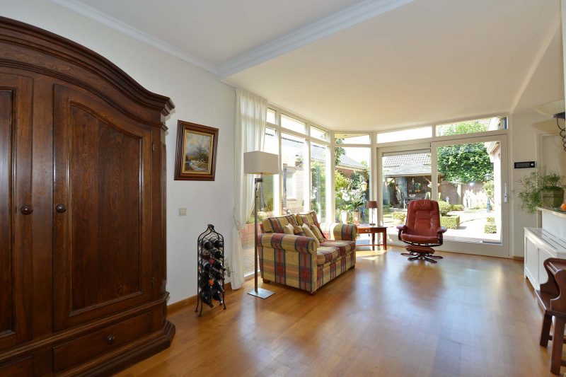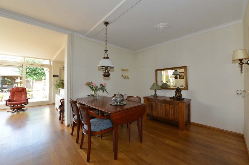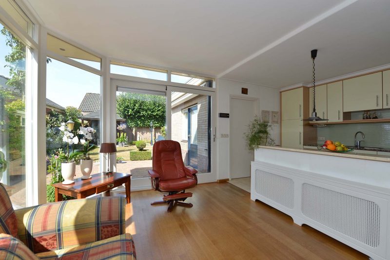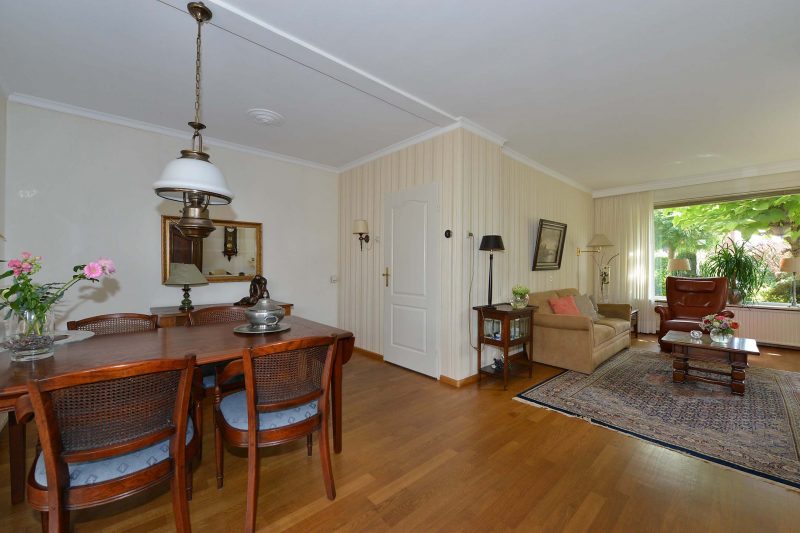 De uitbouw aan de achterzijde is voorzien van een schuifpui en ramen tot op de begane grondvloer. De doorzonkamer, gelegen op oost, zuid en west, doet zijn naam eer aan. In ochtend, middag en avond baadt u in het zonlicht. De woonkamer en keuken zijn voorts voorzien van een prachtige parketvloer en de gashaard zorgt voor een gezellige warmte.