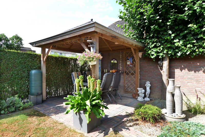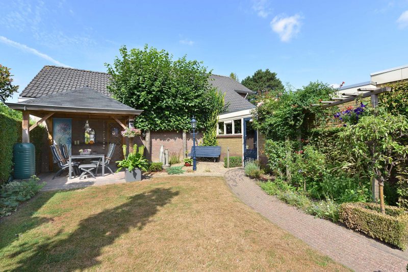 De zonovergoten achtertuin biedt volop privacy. Eigenlijk is er niemand die u in de tuin kan kijken. De tuin is gelegen op het zuiden en westen zodat u de hele dag kunt genieten van de zon. De garage is bereikbaar vanuit de tuin en is buiten uw eigen gezichtsveld achter het perceel van de buurman gelegen. De ruime carport en bestrating zijn dusdanig aangelegd dat er een caravan onder kan staan!