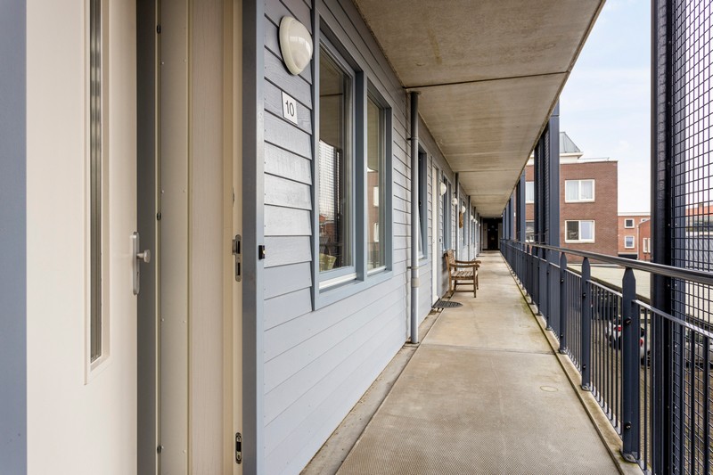 Nummer 10 is aan het einde van de overdekte galerij gelegen. Bijkomend voordeel zijn de ramen aan de zijkant waardoor dit wellicht het lichtste appartement uit het complex is. Ook het overdekte balkon is groter doordat het doorsteekt over de voor- en zijgevel van het complex. Aan de voorzijde van het appartement en zijkant van het balkon zijn elektrische screens aangebracht.