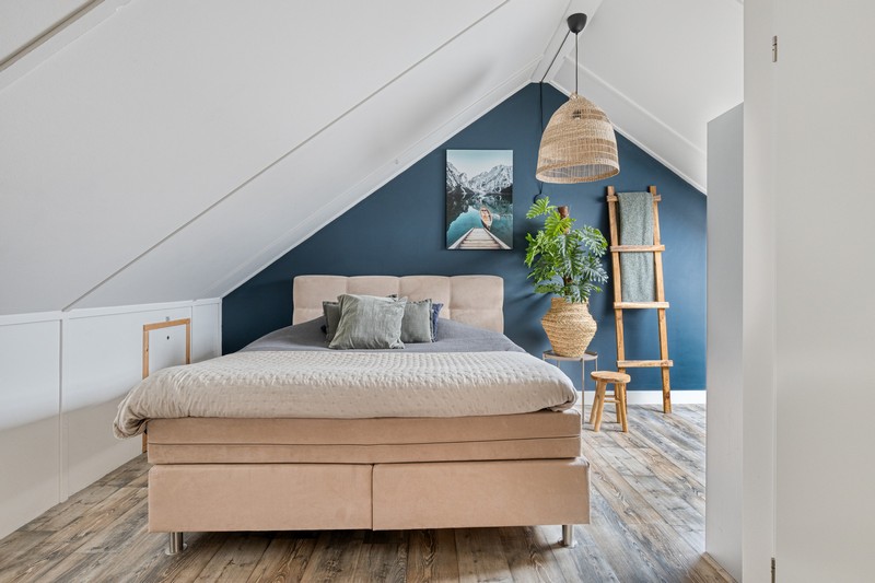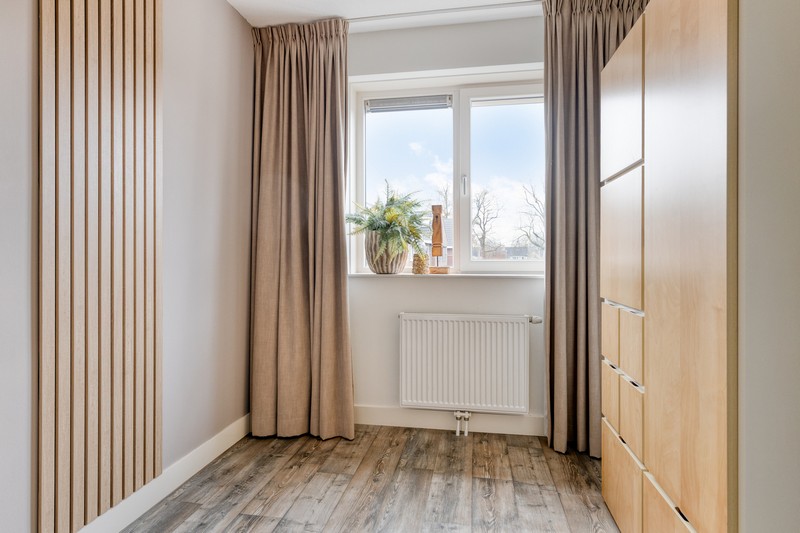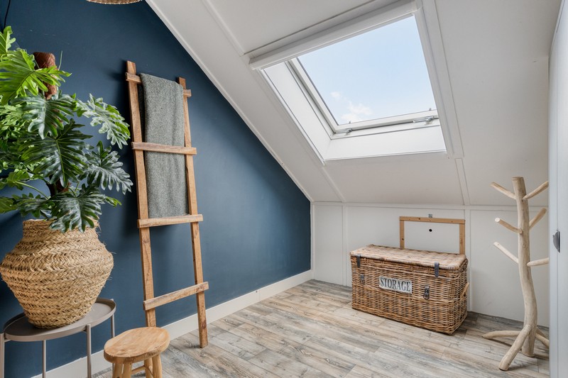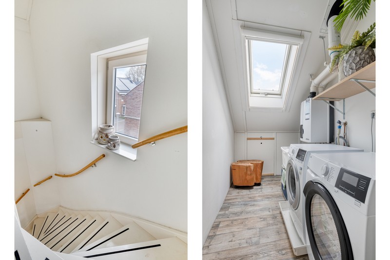 De tweede verdieping bereik je met een vaste trap en is bijzonder ruim. De wasmachine, -droger en CV bevinden zich in een afgesloten ruimte. Ook vind je hier de ruime vierde slaapkamer.