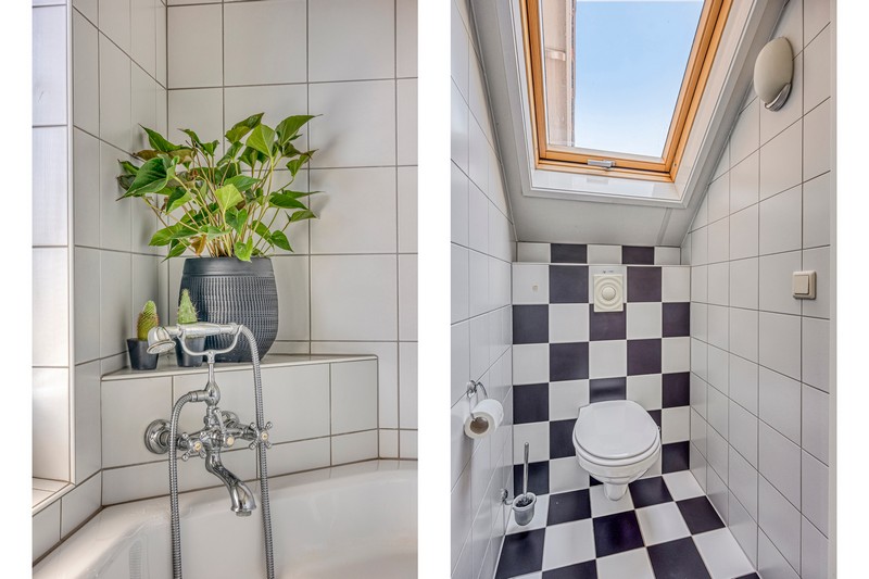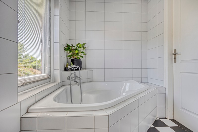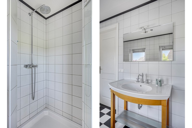 Op de bovenverdieping bevinden zich 3 ruime slaapkamers. Vanaf de centraal gelegen overloop komen we in de licht betegelde badkamer. Deze is voorzien van een inloopdouche, ligbad en dubbele wastafel. Hiermee is de badkamer van alle gemakken voorzien. Op De toilet vinden we in een aparte toiletruimte. Wel net zo handig.