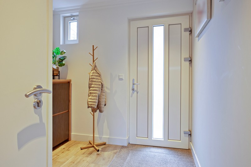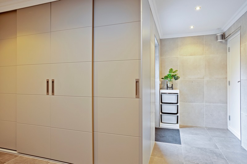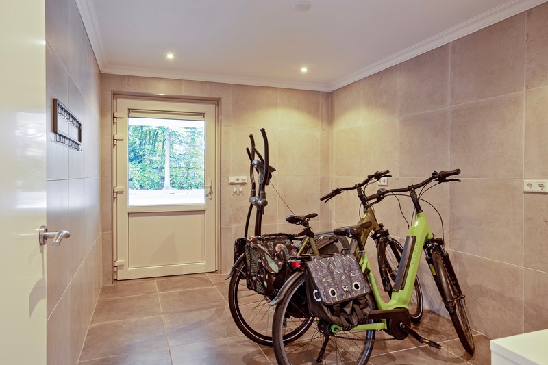 Laten we de achterdeur aan de voorzijde gebruiken! Ideaal met kinderen. Via de oprit met carport komen we in de berging waar de afwerking gelijk is aan de rest van de woning. Er is niet bezuinigd op wand- en vloertegels, strakke plafonds, stucwerk en inbouwverlichting. Dit beloofd wat voor de rest van de woning!