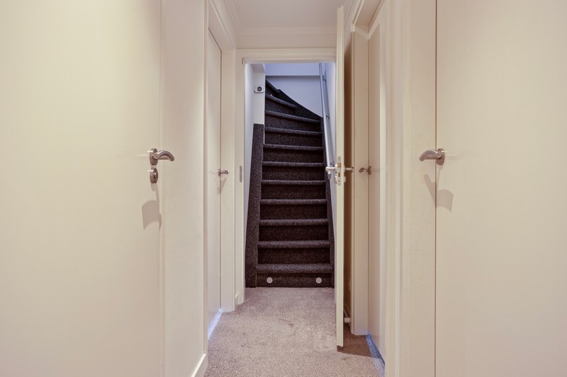 Via de ruime hal met kelderkast komen we op de 1e verdieping.