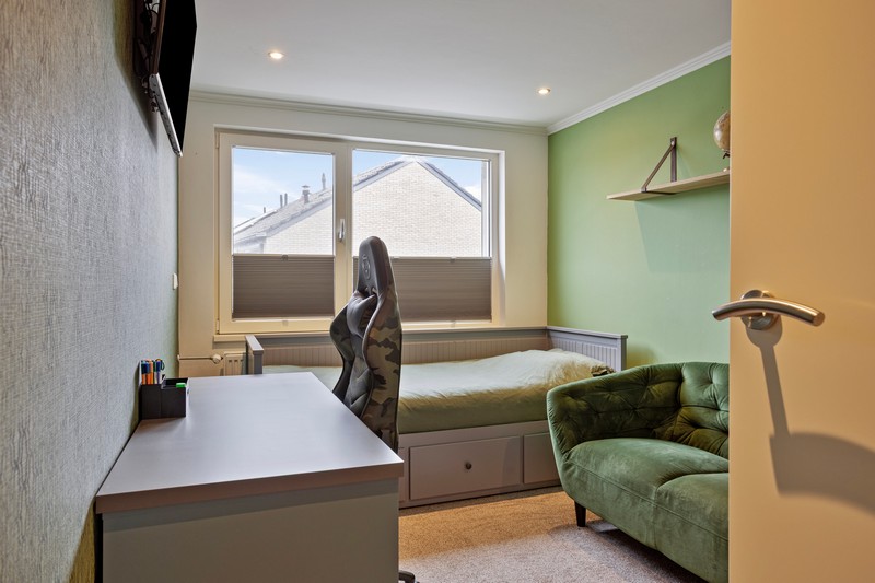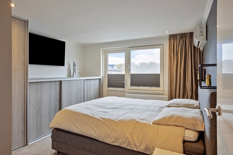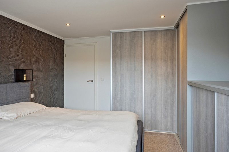 Op de eerste verdieping vind je een overloop die toegang biedt tot drie slaapkamers en voorzien van vaste kastruimte. De twee slaapkamers aan de achterzijde zijn zelfs voorzien van een balkon. Deze verdieping is tevens voorzien van een airco-installatie, waardoor het hier ook op warme dagen heerlijk vertoeven is.