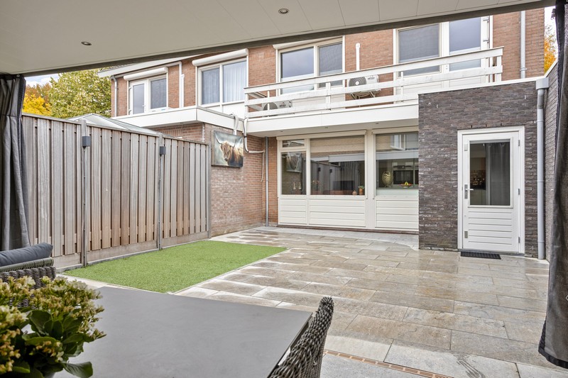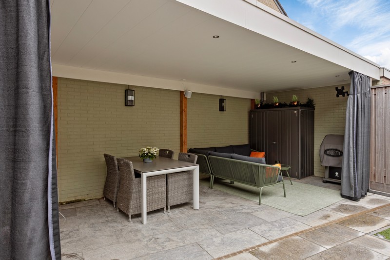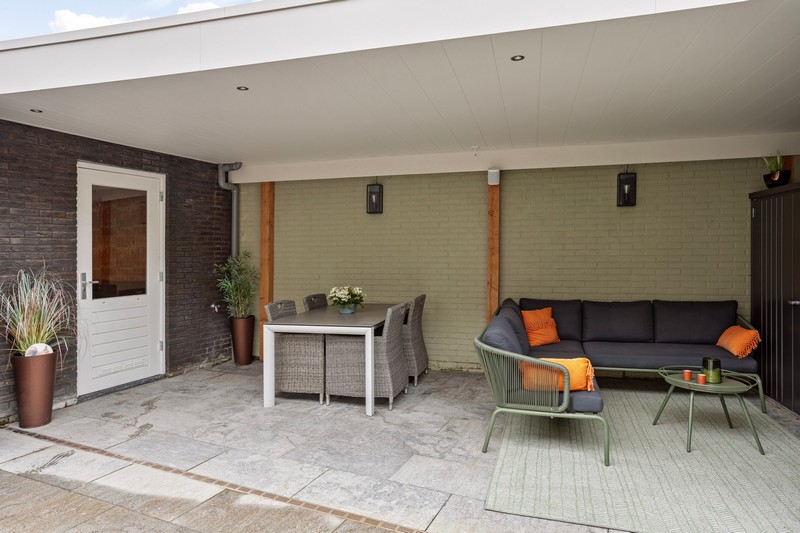 De achtertuin is netjes en biedt volop privacy. De tuin beschikt over een mooie overkapping en een extra tuinkamer! Hier kun je genieten van het buitenleven, ongeacht het weer. De tuin is volledig omheind en onderhoudsarm. De ligging op het westen, zorgt ervoor dat je vrijwel de hele dag ergens in de tuin kunt genieten van zon of schaduw.