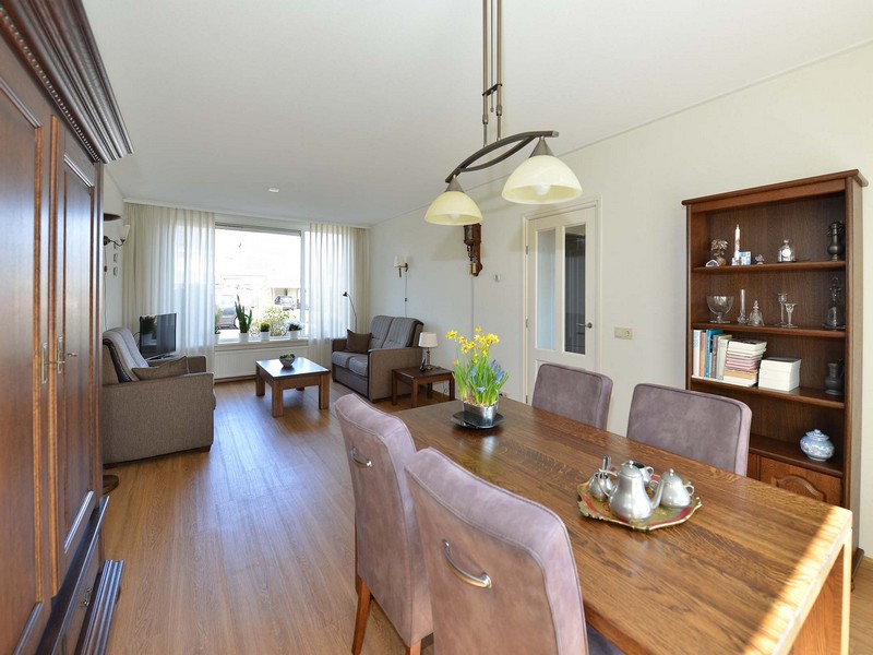 Via de hal met meterkast, vernieuwde toiletruimte (2018) en bergkast komen we in de zonovergoten woonkamer. Met ramen aan de voor- en de achterzijde is het er altijd licht. De dichte keuken is voorzien van een inbouwkeuken (renovatie in 2018) met inductiekookplaat, afzuiging, koelkast, vaatwasser en combimagnetron.