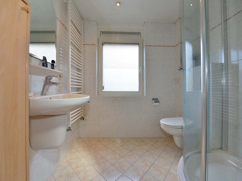 Op de eerste verdieping vinden we 3 ruime slaapkamers waarvan er 2 zijn voorzien van vaste kastruimte, een licht betegelde badkamer met douchecabine, wastafel en hangtoilet. Op de overloop vinden we nog een vaste kast.