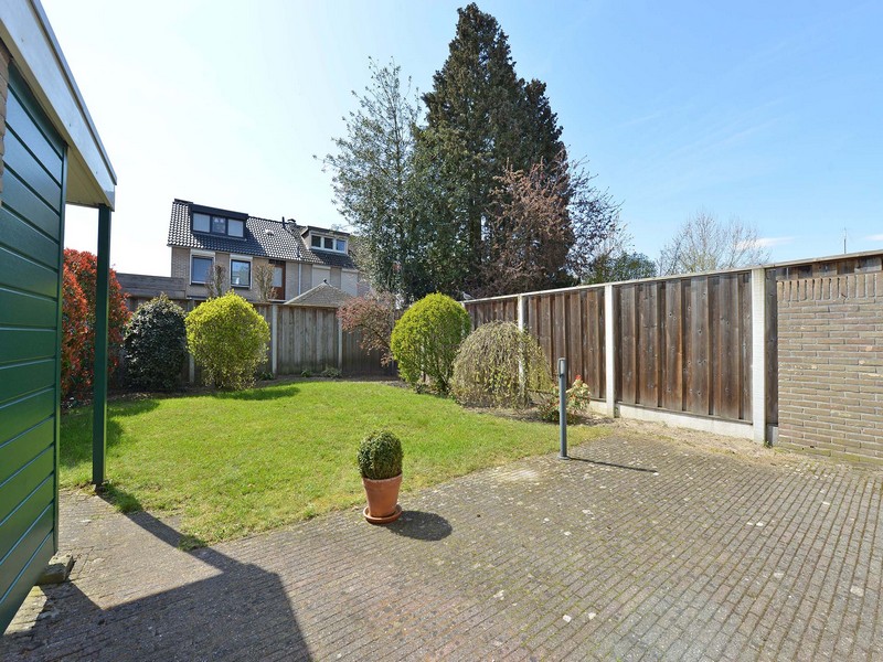 De achtertuin is ideaal gelegen op zuid met een kleine twist naar west. Dat betekent eigenlijk de hele dag zon in de omsloten achtertuin. De woning is voor op de kavel geplaatst waardoor je, ten opzichte van andere woningen in de straat, een diepe achtertuin hebt. Ideaal is ook de ruime garage met een oppervlak van ruim 21 m² en de voor de garage gelegen carport. En laten we ook de ligging aan de parallelweg van de Veldmaterstraat en in de nabijheid van scholen en winkels, niet vergeten.