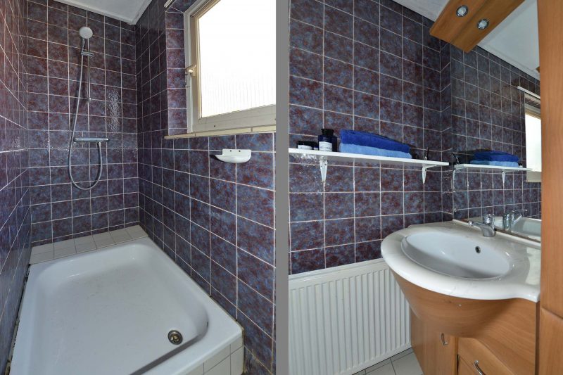 Op de verdieping valt vooral de grootte van de slaapkamers op. Zowel aan de voor- als de achterzijde van de woning ligt een ruime slaapkamer waar met gemak een 2-persoonsbed op past. Beide slaapkamers zijn voorzien van vaste kastruimte maar er is ook voldoende plek voor extra kasten of een bureau. Op de 3e slaapkamer vinden we een vaste trap naar de 2e verdieping waar we wederom een grote slaapkamer vinden. Overigens is de indeling op de verdieping eenvoudig aan te passen zodat ook de 3e slaapkamer op de verdieping is te gebruiken. De badkamer, voorzien van douche en vaste wastafel, kan nog wel een opfrisbeurt gebruiken.