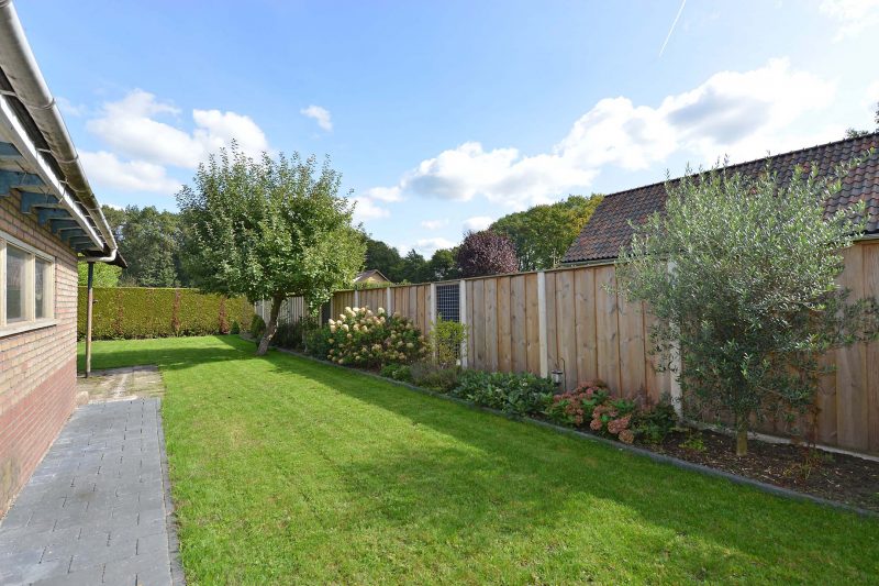 De tuin is diep en met een flinke grasmat aangelegd. Een robotmaaier zou zich hierop prima kunnen vermaken, mocht uzelf niet van tuinieren houden. De tuin is voorts erg onderhoudsarm aangelegd, dus daar heeft u amper omkijken naar. De tuin is overigens zo groot dat er nog voldoende plek is voor een fraaie overkapping of grote hobbyruimte.