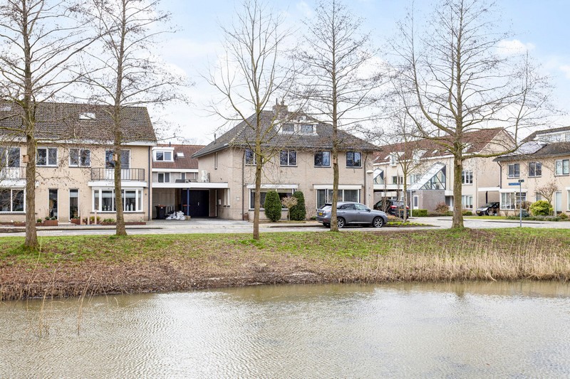 Aan de rechterzijde komen we in het leefgedeelte. Koken doe je gezellig aan de voorkant van het huis in de ruime woonkeuken met erker die zorgt voor veel daglicht. Buiten de vele opbergkasten, beschik je hier over een koel-vriescombinatie, inductie kookplaat met afzuigkap, vaatwasser, oven, spoelbak met mengkraan. Gezellig een drankje doen met familie of vrienden aan een grote eettafel, geen probleem! En dit alles met parkachtig uitzicht over groen en water!