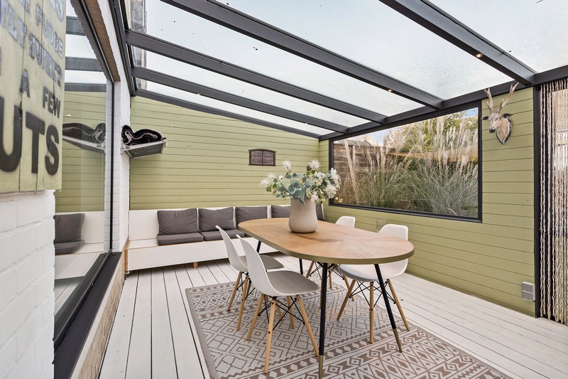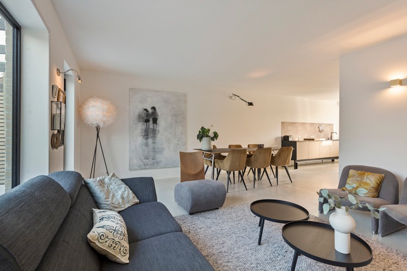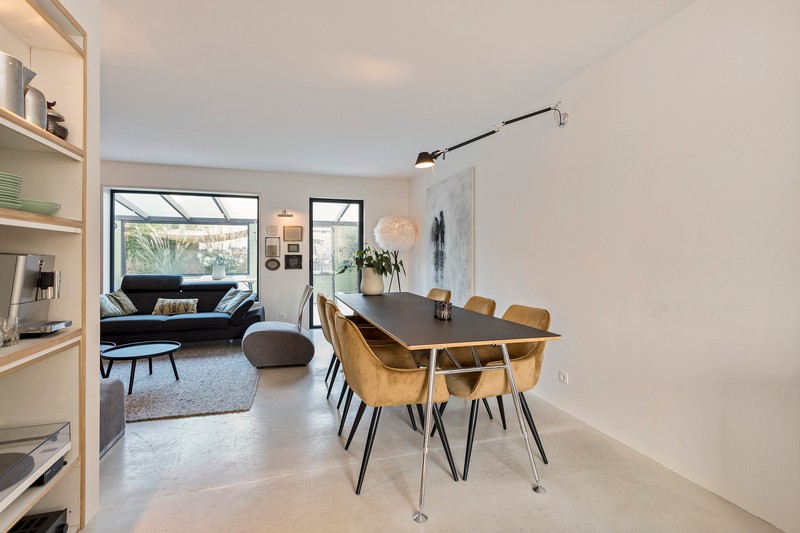 Vergaap je aan alle mooie details. Alles is licht en modern en ook de vloerverwarming is helemaal van deze tijd. De woonkamer is tuingericht en bestaat uit een ruim eetgedeelte waar nu een 6-persoons eettafel staat en ook de moderne zithoek is bijzonder sfeervol. Binnen en buiten zijn met elkaar verweven door de over de volle breedte gebouwde tuinkamer/serre.