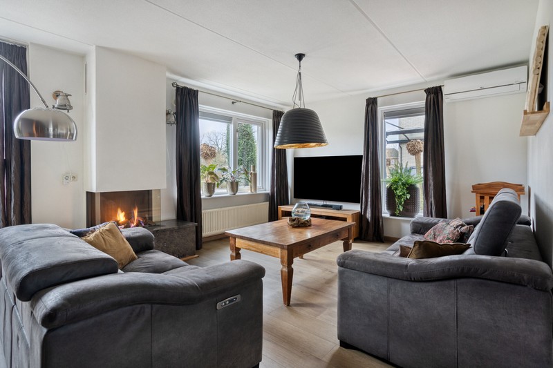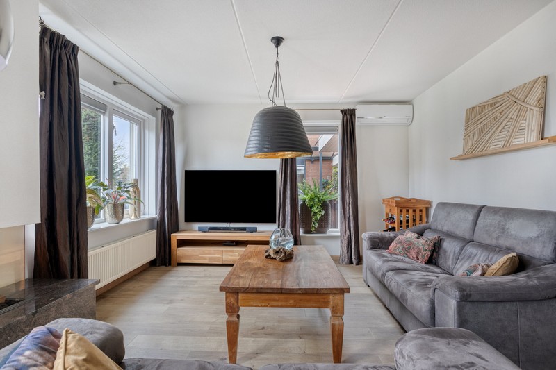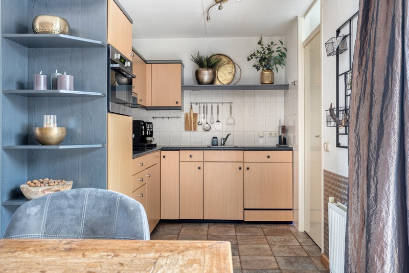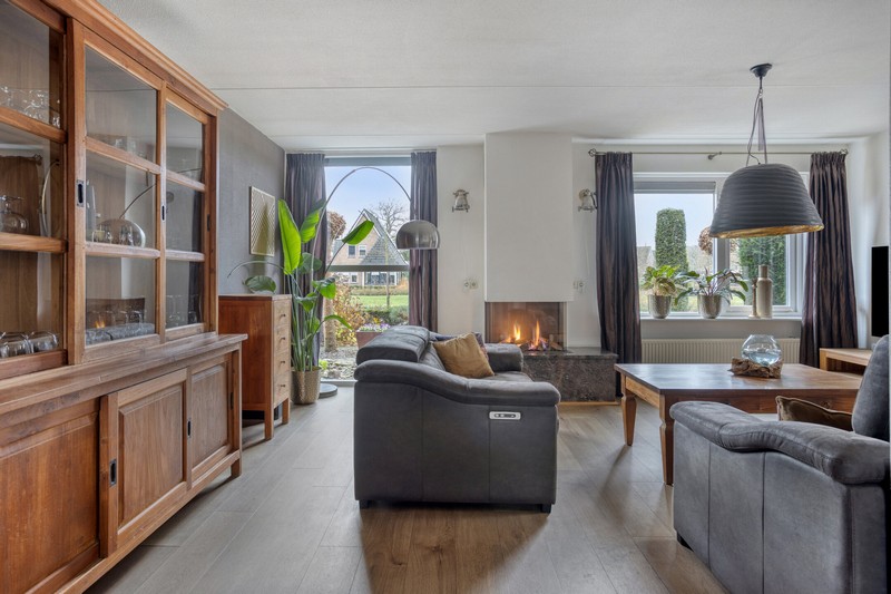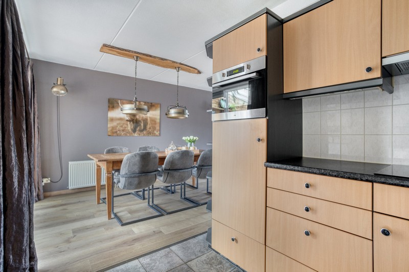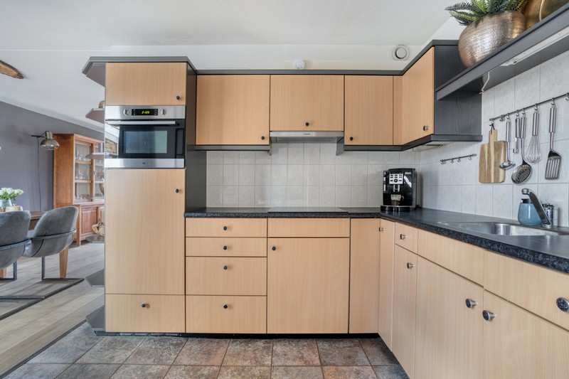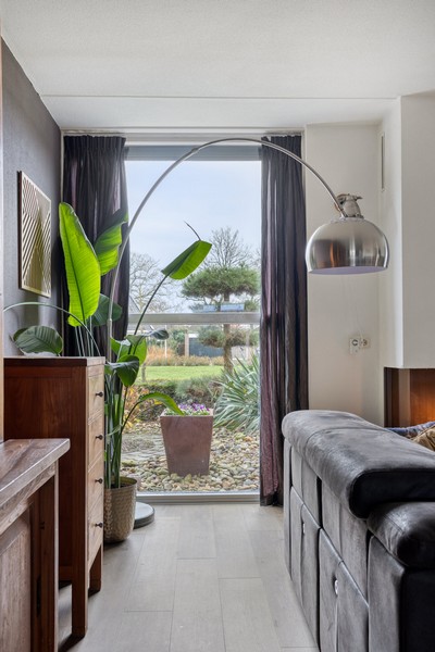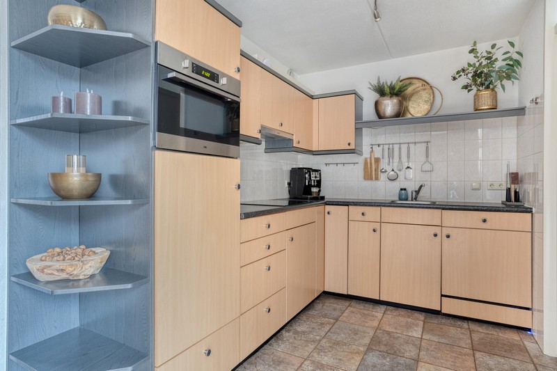 Grote raampartijen aan de voorzijde en zijkant van de woning en schuifpui aan de achterzijde zorgen voor een prettige lichtinval gedurende de hele dag. De L-vormige woonkamer met gashaard is gelegen aan de voorzijde waar je uit kijkt over het plantsoen en waterpartij. De keuken vinden we aan de achterzijde De keuken beschikt over een kookplaat, afzuiging, combi-oven, koelkast en een vaatwasser. De praktische indeling biedt volop werk- en bergruimte.