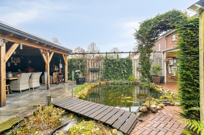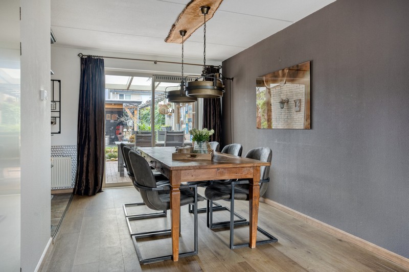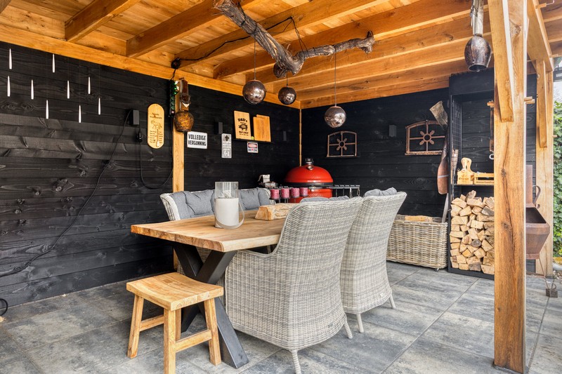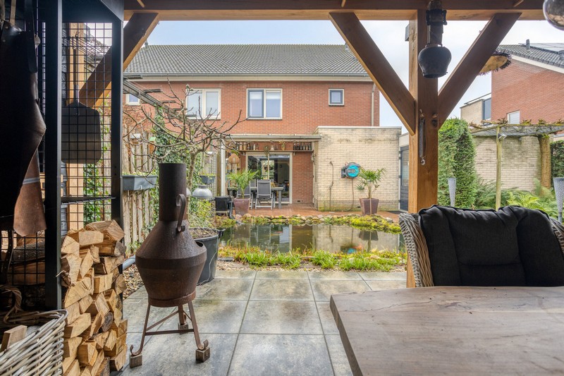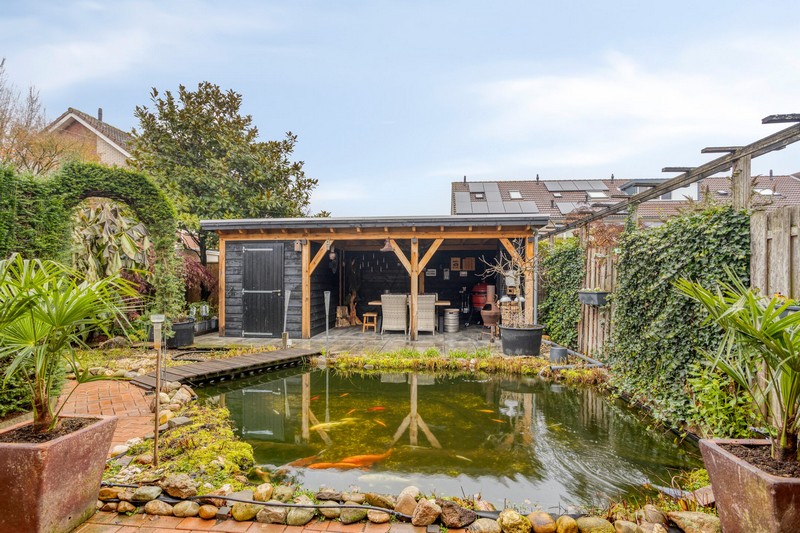 De achtertuin vormt een heerlijke plek voor het hele gezin. Of het nu gaat om spelen, ontspannen of samen buiten zijn, hier komt alles samen. Vanuit de schuifpui in de woonkamer kom je uit onder de overkapping direct achter de woning. Achterin de tuin vinden we een tweede overkapping met buitenberging. Zo kunt u het hele jaar door genieten van het buitenleven. De tuin is fraai aangelegd en biedt een fijne balans tussen groen en functionaliteit, waardoor het een plek is waar zowel jong als oud zich thuis voelt.