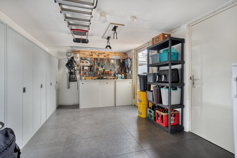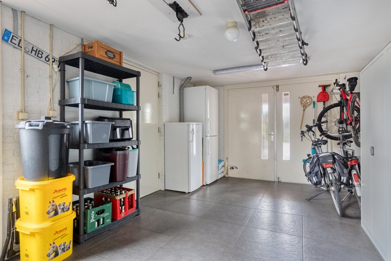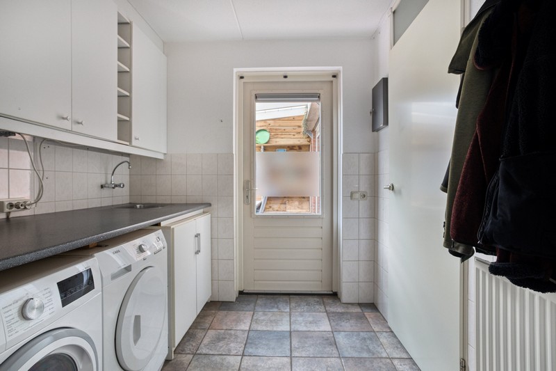 Aansluitend bevindt zich de bijkeuken waar ondermeer het witgoed kan staan. Vanuit hier heb je directe toegang tot zowel de tuin als de garage.