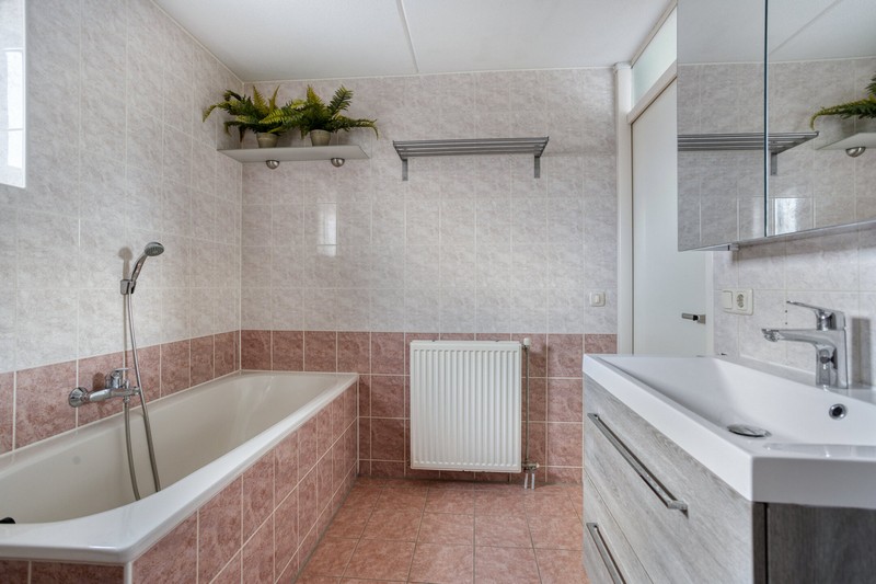 Via de vaste trap bereik je de eerste verdieping. De overloop geeft toegang tot drie ruime slaapkamers en een complete badkamer. Deze is ruim van opzet met een ligbad, separate douche, breed wastafelmeubel met spiegelkast en handig tweede toilet.