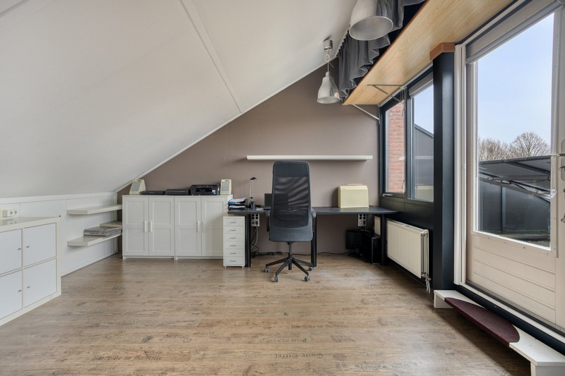 De tweede verdieping biedt nog meer ruimte. De open ruimte is indien gewenst in te delen tot een verdieping met voorzolder en ruime 4e slaapkamer. Aansluitend, gelegen op de zuidzijde, vinden we een eveneens ruim dakterras.