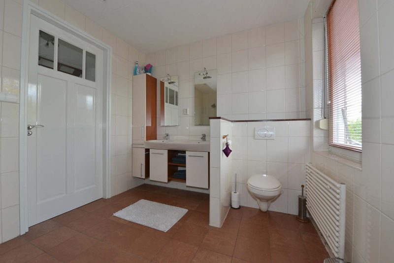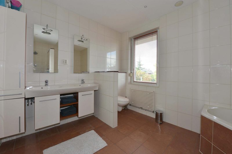 Op de eerste verdieping vinden we vier ruime slaapkamers en een grote badkamer, voorzien van vloerverwarming, en uitgerust met een groot hoekligbad, inloopdouche, dubbele wastafel en hangtoilet.
