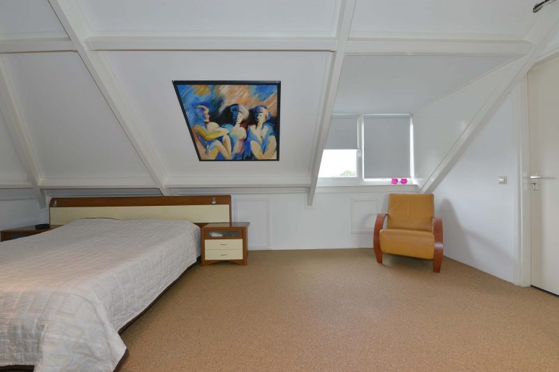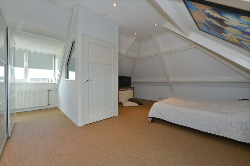 De vijfde tevens riante slaapkamer vinden we op de 2e verdieping. Deze is uiteraard middels een vaste trap bereikbaar en het resterende deel van de verdieping is in gebruik als bergruimte.