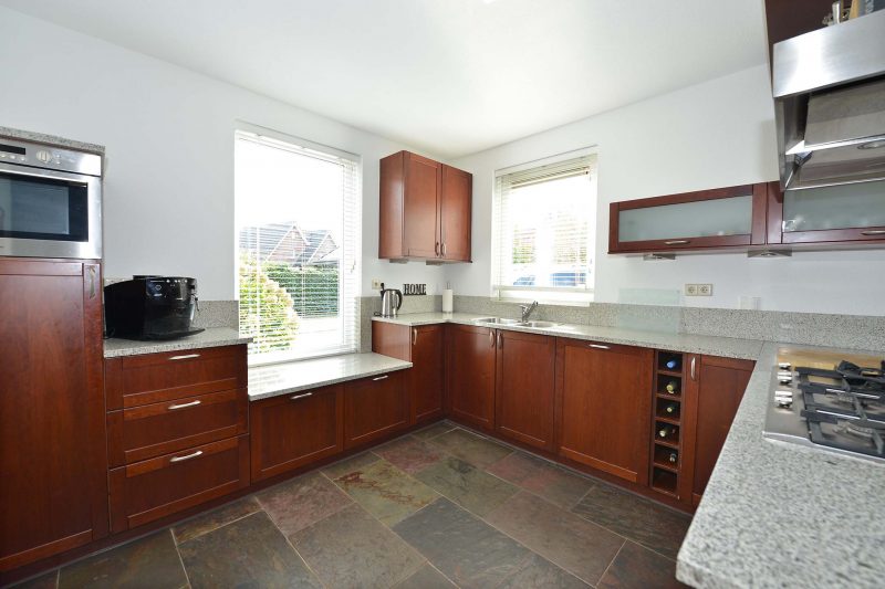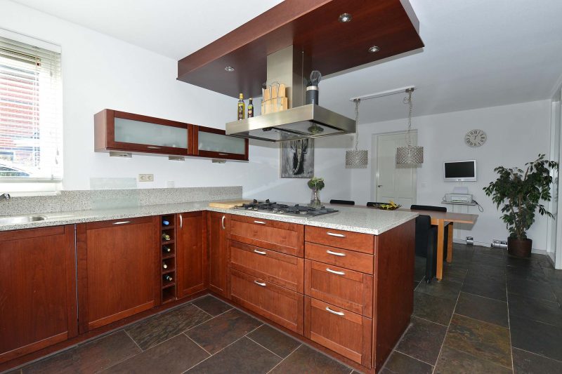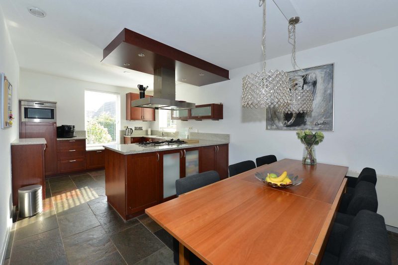 De woonkeuken is middels suitedeuren, vrijwel volledig in glas uitgevoerd, gescheiden van de woonkamer. De U-vormige inbouwkeuken is voorzien van een gaskookplaat, afzuiging, koelkast, combimagnetron en vaatwasser. Er is ruimte te over voor een grote eettafel om lekker te tafelen en na te borrelen.
