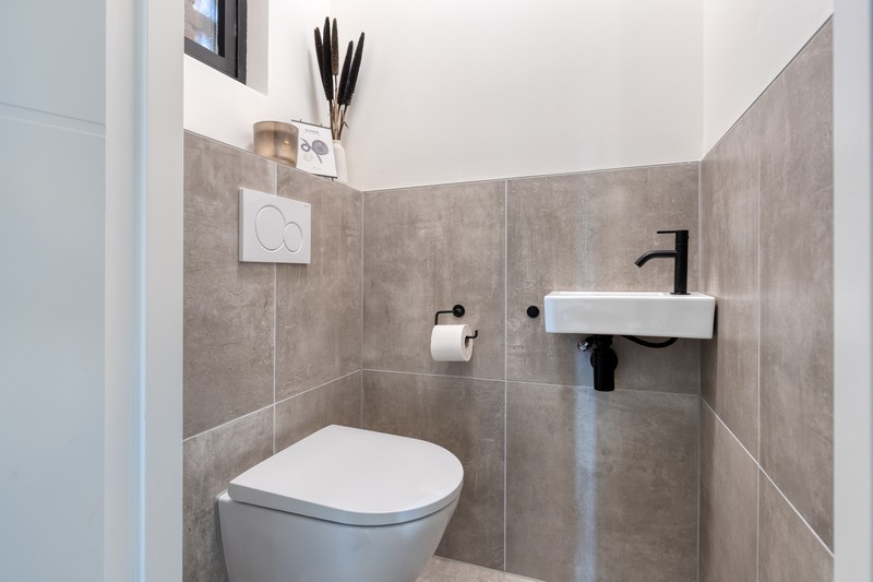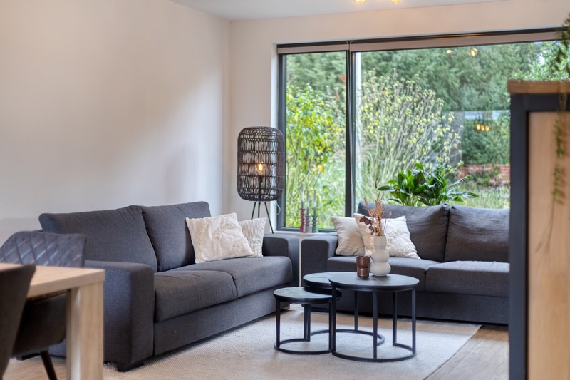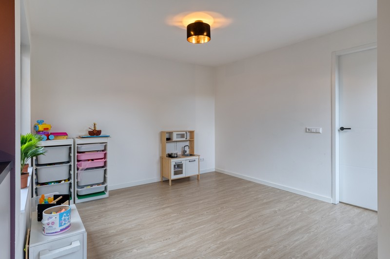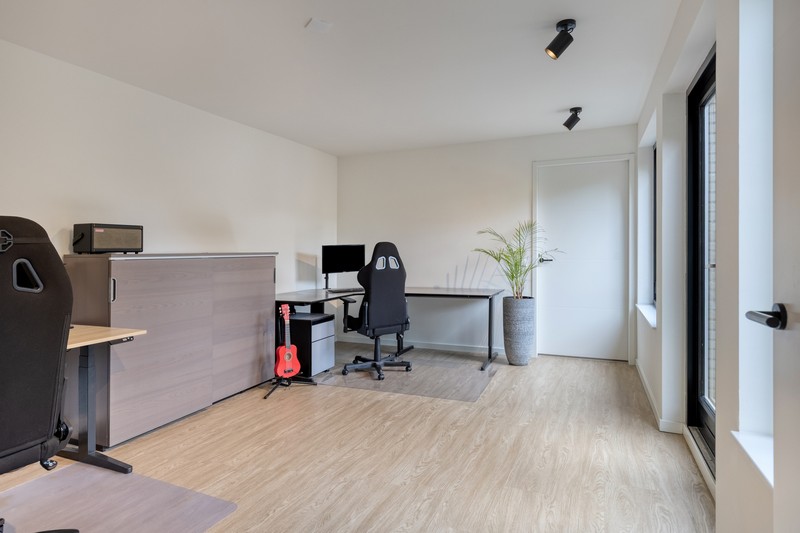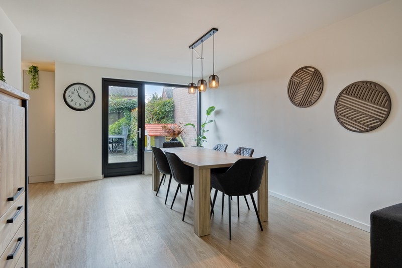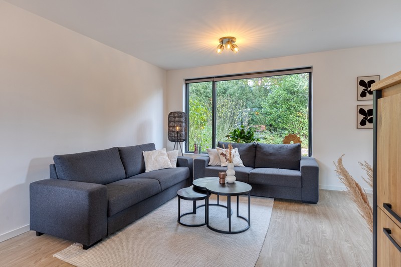 Op de begane grond ligt overal vloerverwarming en een PVC-vloer, alle buitenkozijnen zijn donker antraciet en tussen de hal en de woonkamer zit een stijlvolle staallook deur met glas. Alles is tot in detail afgewerkt — je hoeft alleen nog maar te verhuizen.