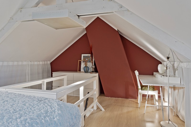 De 2e verdieping is middels een vaste trap bereikbaar en is volledig in gebruik als slaapkamer.