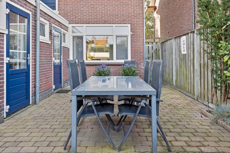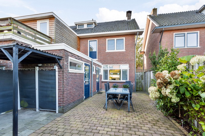 De achtertuin is middels een achterom te bereiken en is gelegen op het noordwesten. Met deze ligging kunt u genieten van de middag en avondzon. De fietsen vinden hun plek onder de overkapping of in de aangebouwde stenen berging. Ook handig om te weten is dat de meeste kozijnen van kunststof zijn dus aan buitenonderhoud ben je nauwelijks tijd kwijt.